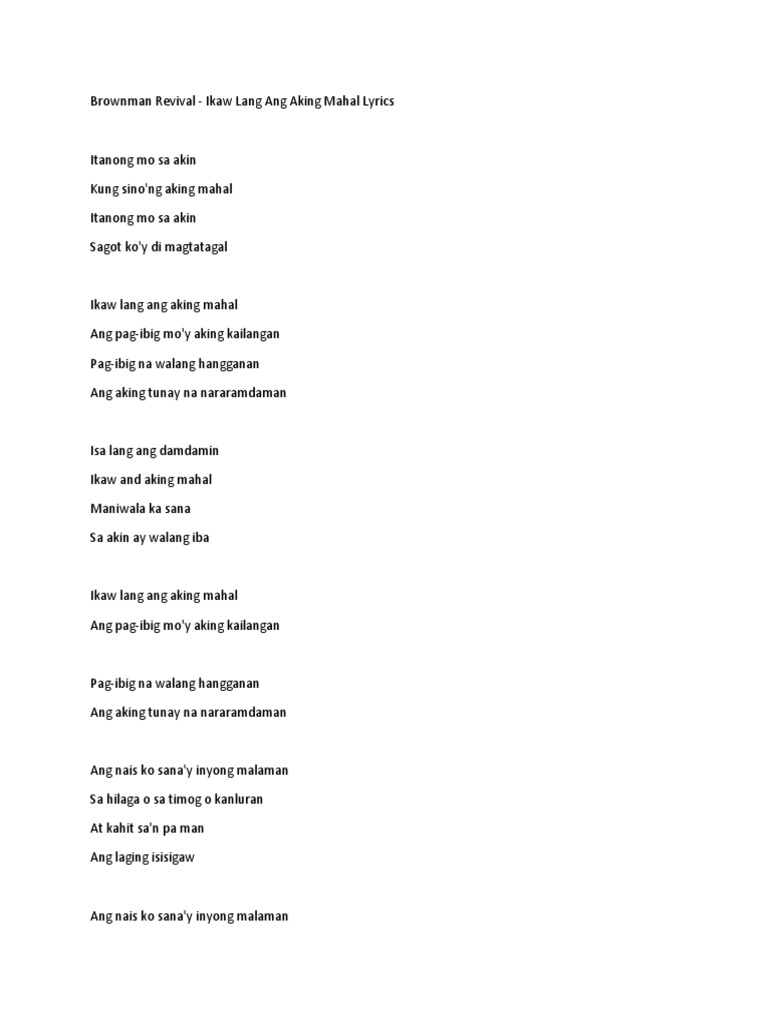 Brownman Revival Ikaw Lang Ang Aking Mahal Pdf